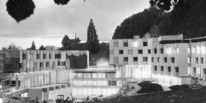 1968 ersetzte ein Neubau die in die Jahre gekommene Belle-Epoque-Anlage. Der renommierte Zürcher Architekt André Studer komponierte ein neues Haus nach den Prinzipien der «harmonikalen Bauweise» ins Quellgebiet hinein. Josef Seleger, ein Pionier der Landschaftsarchitektur, trug die harmonischen Masse des Hauses in den Aussenraum. Seleger gestaltete einen Park, der mit den Gebäulichkeiten und den alten Bäumen des Kurgeländes eine Einheit bildet.