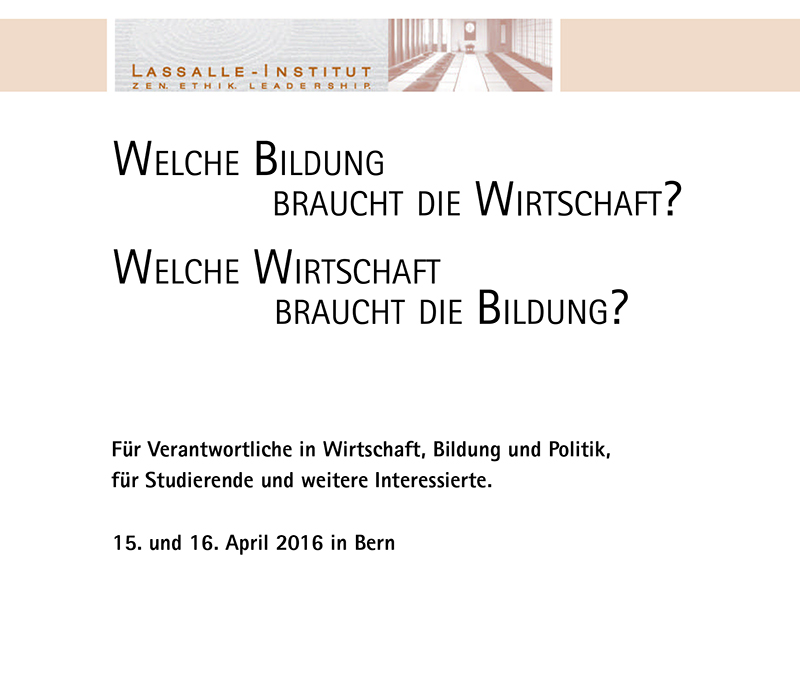 Dieser Frage geht die Tagung des Lassalle-Instituts am 15. und 16. April in Bern nach. Die unterschiedlichen Akteure des Bildungssystems reflektieren ihre Erfahrungen und messen ihre Argumente im Dialog. Das Ziel: jenseits eines starren Gegeneinanders ökonomischer und humanistischer Anliegen Lösungen zu suchen, die sowohl einer menschengerechteren Bildung als auch einer nachhaltigen Wirtschaft entgegenkommen.