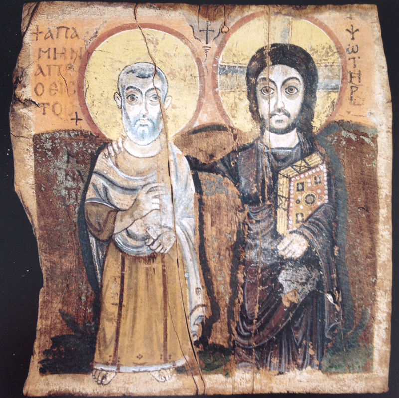 Die koptische Ikone "Christus und Menas" aus dem 8. Jahrhundert, die aus dem Kloster Baouit in Ägypten stammt und deren Original sich im Louvre befindet, dient uns als Sinnbild für unser Pilgern. Wie Christus Menas begleitet, so soll uns Christus umarmen, so dass wir ein Segen für die Welt, die Mitmenschen und uns selbst sein können.