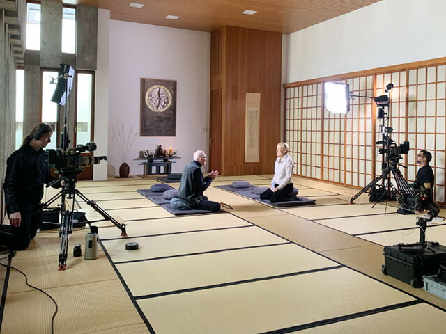 „Wahnsinn“, entfuhr es einem sichtlich beeindruckten Niklaus Brantschen, als das Filmteam sein Equipment für die Aufnahmen brachte. Das ist auch für den Medien-Profi Brantschen nicht alltäglich: Mit Stativen, Licht und Kameras verwandelt sich das Zendo im Lassalle-Haus Schritt für Schritt in ein Fernsehstudio.